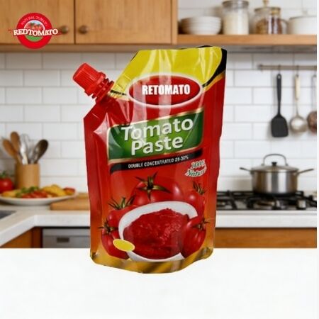 Our 340g double-concentrated tomato paste in stand-up spouted sachets offers exceptional convenience and quality. With a Brix level of 28-30%, this premium tomato paste delivers rich flavor and vibrant color in practical packaging designed for modern kitchens.